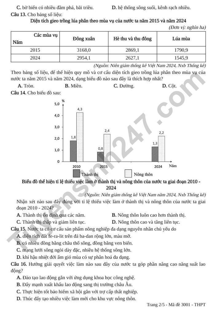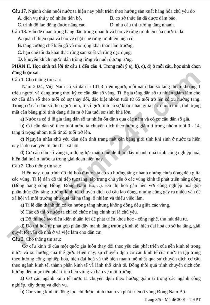 Câu 2. Tổng số dân nước ta năm 2024 là 101,3 triệu người, số dân thành thị là 39 triệu người. Hãy cho biết tỉ lệ dân nông thôn trong tổng số dân là bao nhiêu phần trăm (làm tròn kết quả đến một chữ số thập phân).