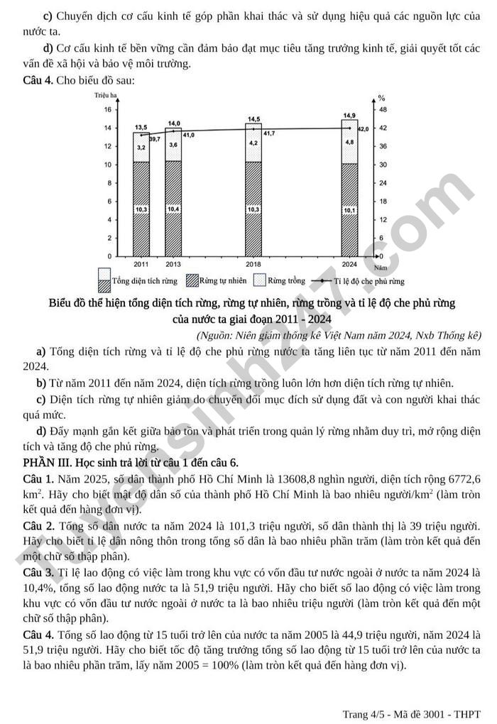 PHẦN III. Học sinh trả lời từ câu 1 đến câu 6.