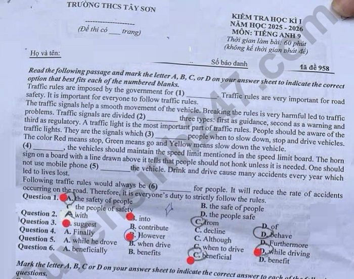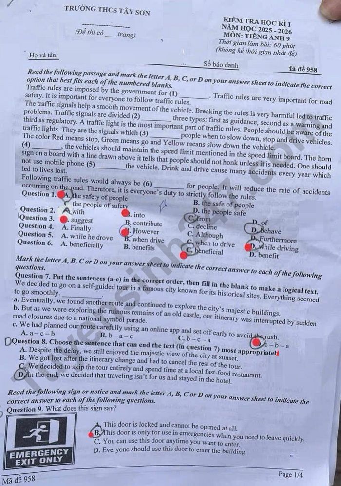 Đề thi học kì 1 năm 2025 THCS Tây Sơn - môn Anh 9