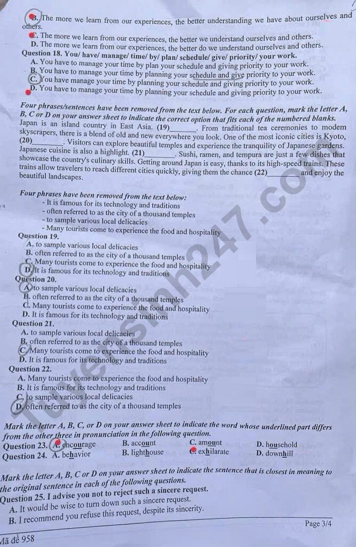 Question 18. You/ have/ manage/time/ by/ plan/ schedule/ give/ priority/your work.