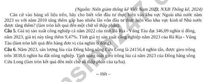 Câu 5. Giá trị sản xuất công nghiệp cả năm 2022 của tỉnh Bà Rịa - Vũng Tàu đạt 346,09 nghìn tỉ đồng. năm 2023, giá trị này tăng thêm 9,47%. Tính giá trị sản xuất công nghiệp năm 2023 của Bà Rịa - Vũng Tàu (làm tròn kết quả đến hàng đơn vị của nghìn tỉ đồng).