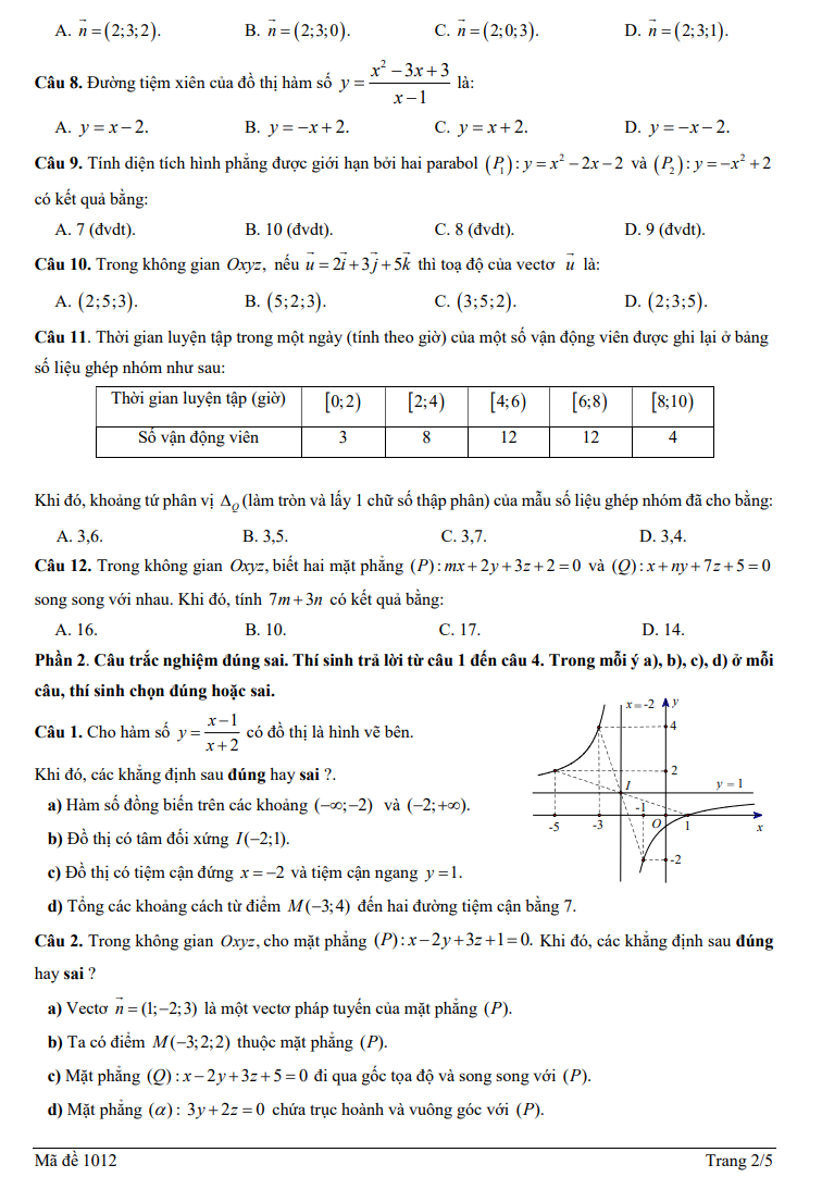 Hai câu thuộc chương trình lớp 12, ở mức vận dụng thấp, tập trung vào các chương 1, 4, 5 và 6.