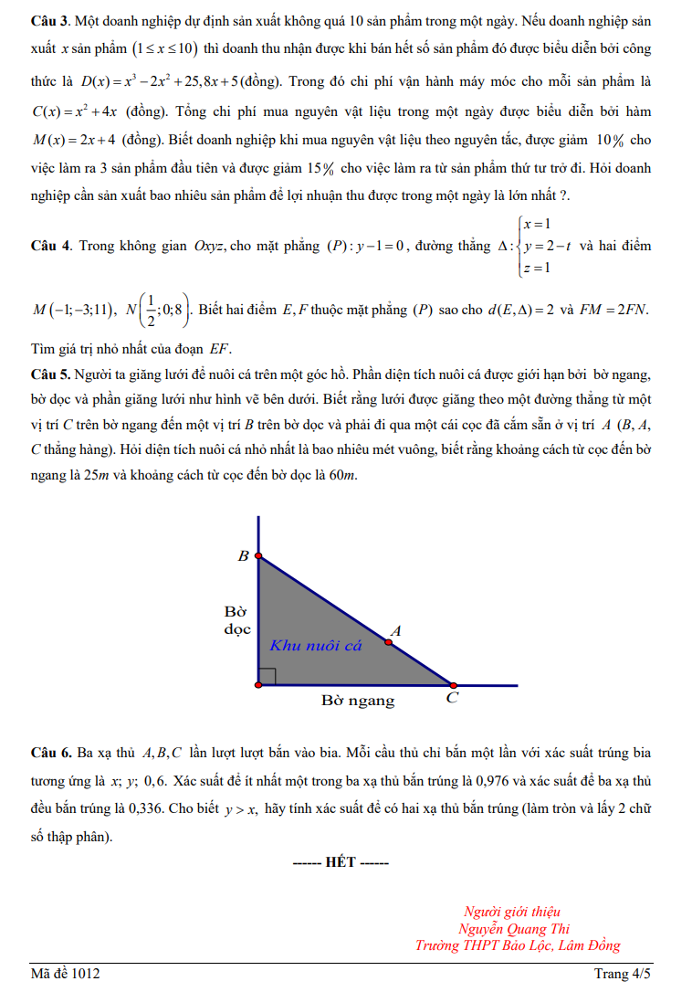 Năm câu thuộc chương trình lớp 12, trong đó có từ 3 đến 5 câu toán thực tế.