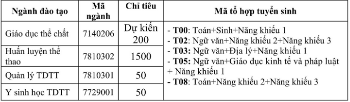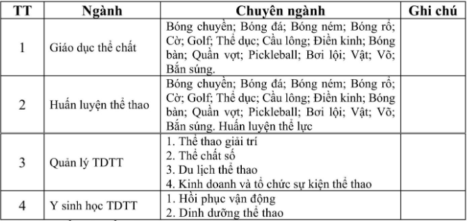 Ghi chú: Thí sinh thuộc diện nêu trên khi trúng tuyển ngành Giáo dục thể chất thực hiện kế hoạch học tập theo chương trình đào tạo chính quy chung của Nhà trường; không áp dụng chế độ đào tạo riêng hoặc tích lũy học phần theo chương trình dành cho vận động viên.