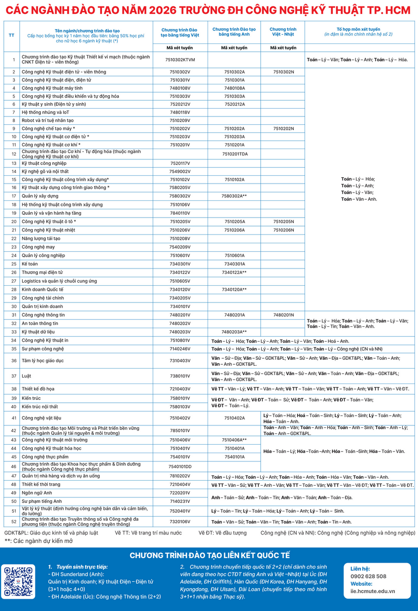 Thông tin tuyển sinh Đại học Công nghệ kỹ thuật TPHCM 2026