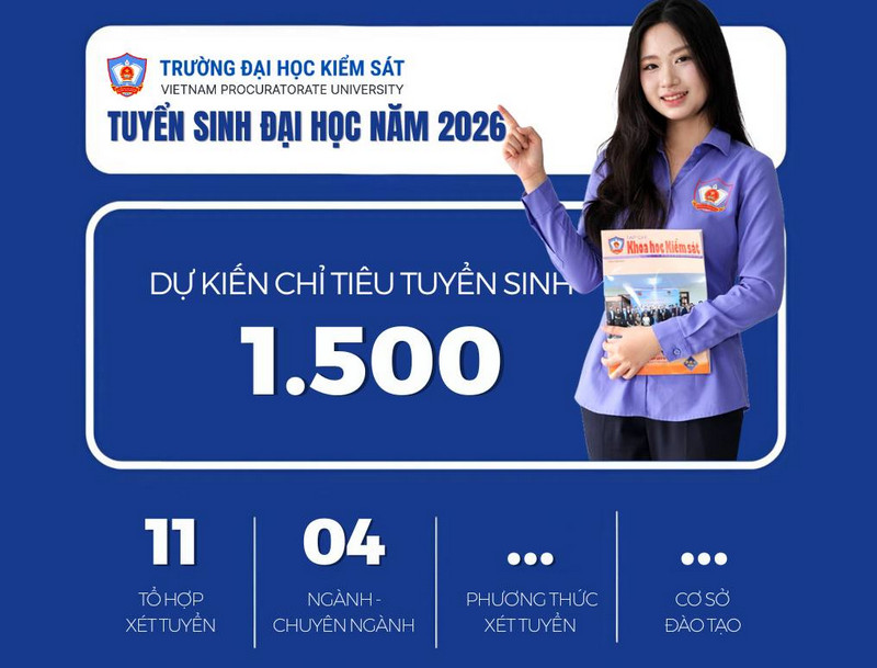 Trường Đại học Kiểm sát Hà Nội công bố thông tin tuyển sinh năm 2026. Theo đó trường dự kiến tuyển 1.500 chỉ tiêu, tăng 650 chỉ tiêu so với năm trước.
