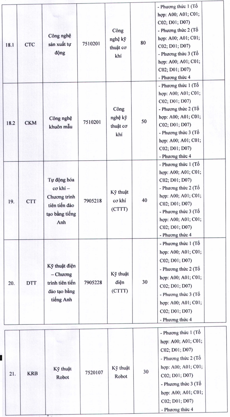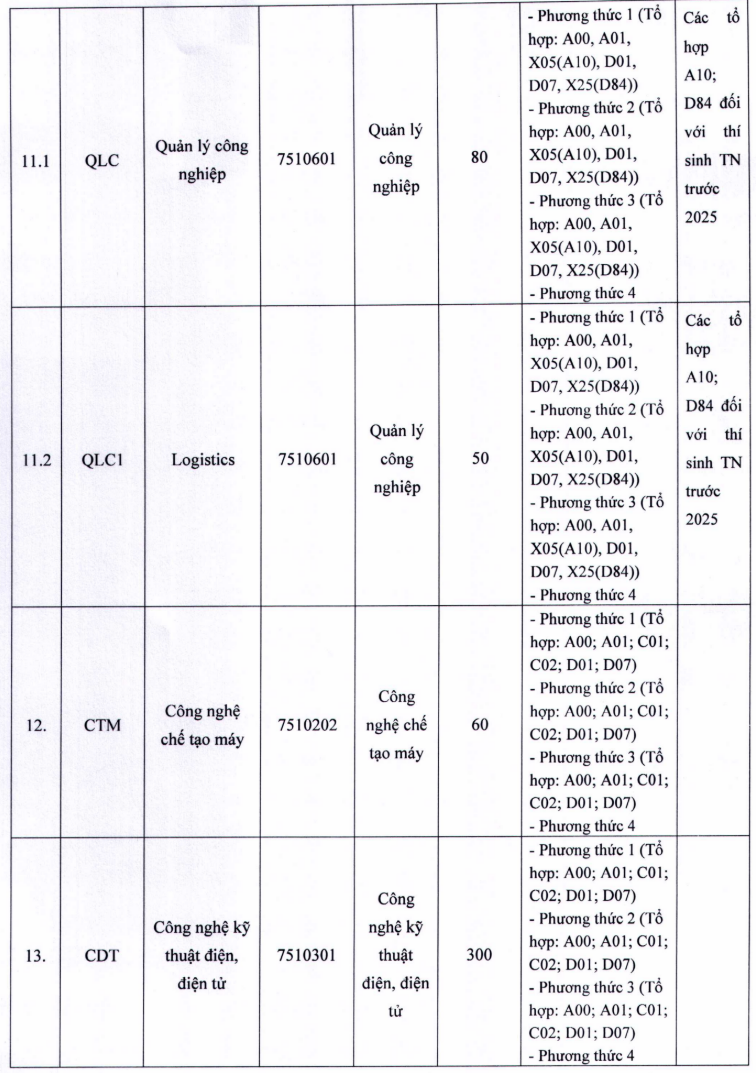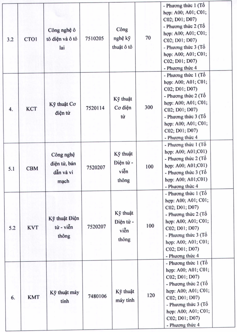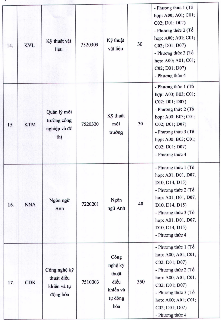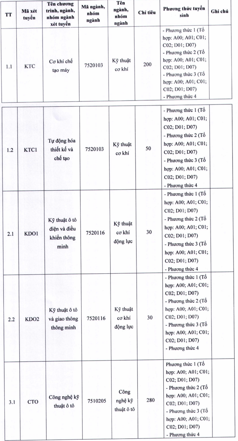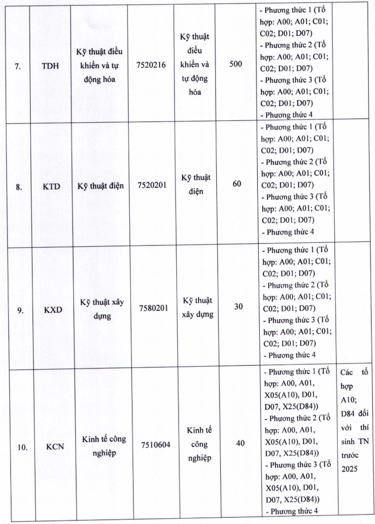 1.3.3. Xét tuyển thẳng: Theo quy chế tuyển sinh của Trường Đại học Kỹ thuật Công nghiệp và của Bộ GD&ĐT.