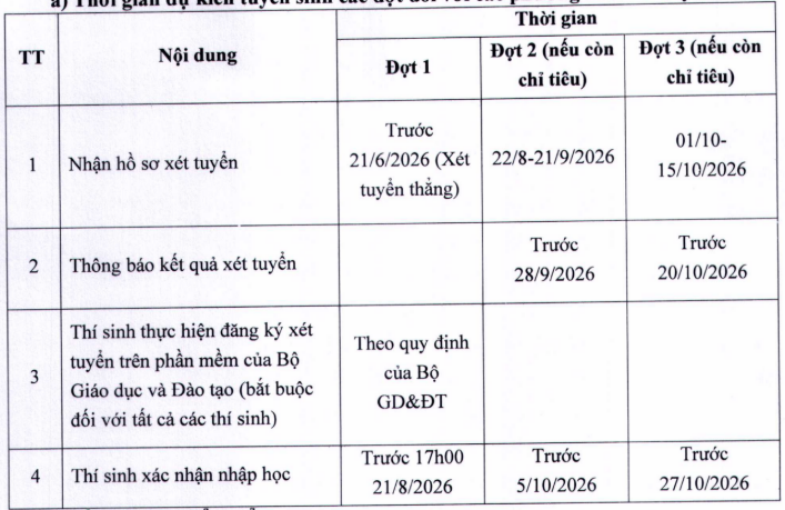 a) Thời gian dự kiến tuyển sinh các đợt đối với các phương thức xét tuyển