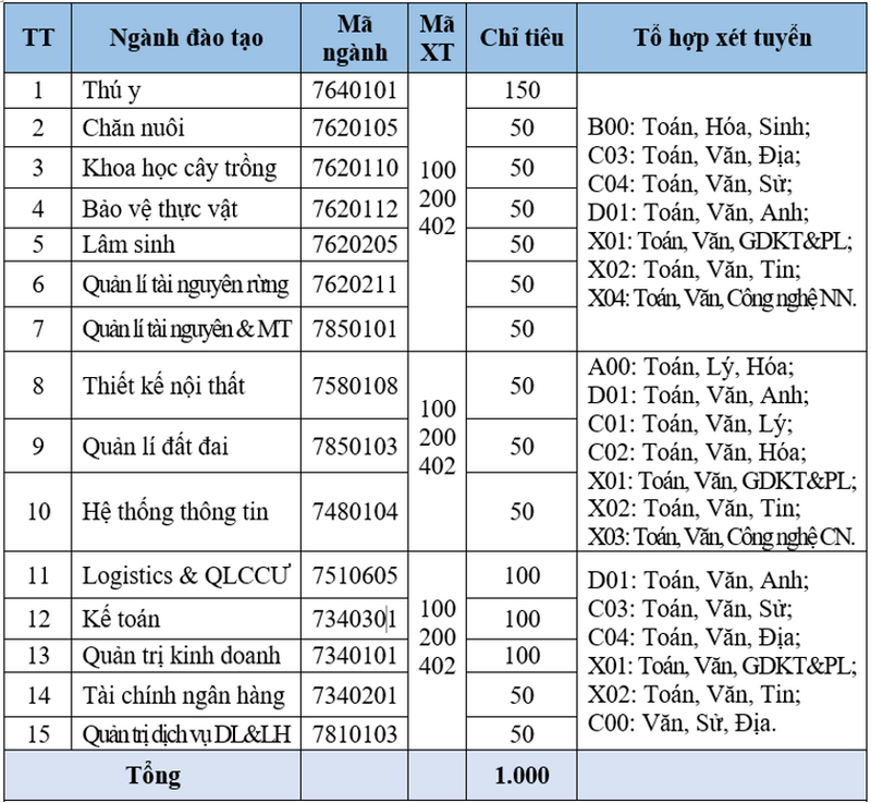 Phân hiệu trường Đại học Lâm nghiệp tại tỉnh Đồng Nai 2026 tuyển sinh 1000 chỉ tiêu cho 3 phương thức xét tuyển.