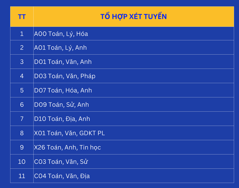 Năm 2026, Trường Đại Kinh tế, Đại học Huế công bố 5 phương thức tuyển sinh, với 11 tổ hợp môn xét tuyển