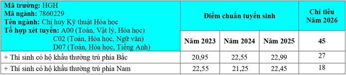 Năm 2026, Trường Sĩ quan Phòng hóa tuyển sinh 45 chỉ tiêu, trong đó, 27 thí sinh có hộ khẩu thường trú phía Bắc, 18 thí sinh có hộ khẩu thường trú phía Nam.