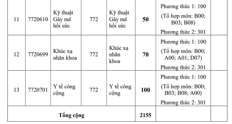 - Ngành Y khoa tăng cường tiếng Anh: Thực hiện xét tuyển sau khi thí sinh hoàn thành thủ tục nhập học ngành Y khoa.